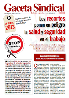 Unha xornada reivindicativa e de loita na que CCOO quere denunciar as terribles consecuencias que sobre a salúdelaboral, a prevención de riscos e as condicións de traballo están tendo a reforma laboral e os recortes impostos polo Goberno do PP; así como a actitude dos empresarios ao considerar prioritarias as inversións en prevención.